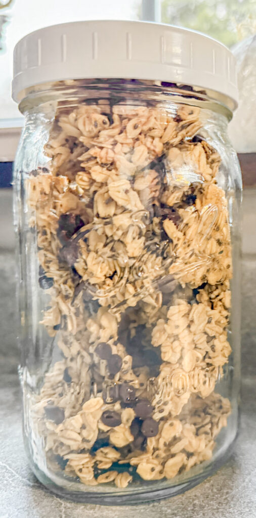 - The granola will last for a couple of weeks in an airtight container. Mason jars with screw on lids work great for storing.